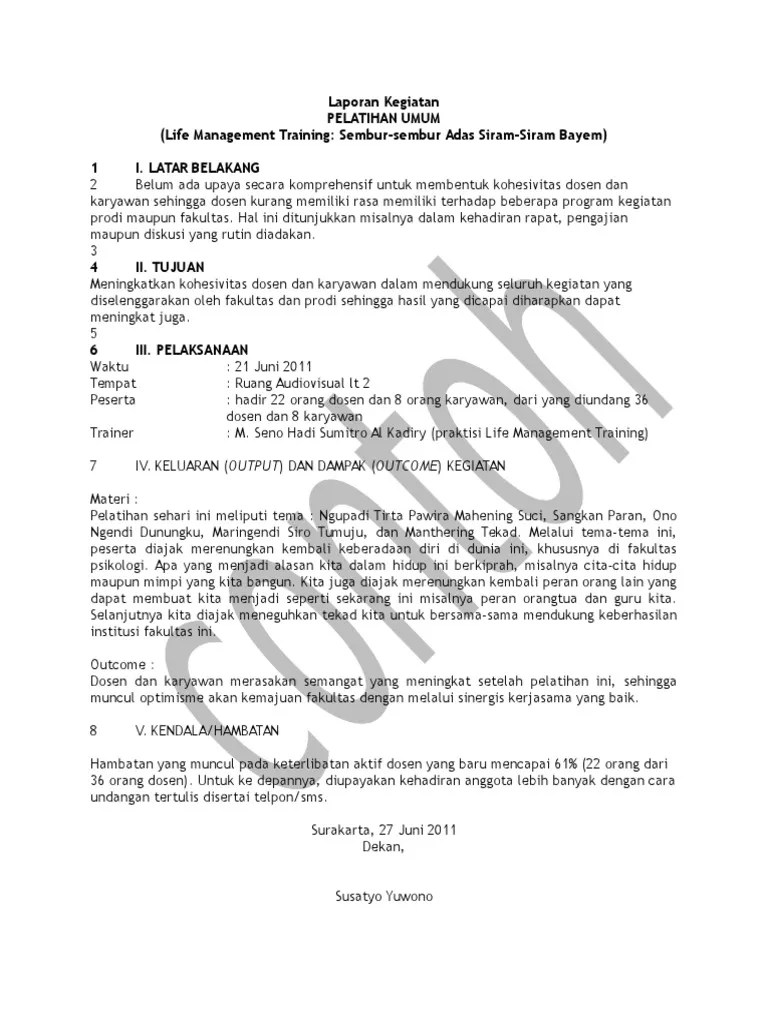 Contoh Laporan Kegiatan Training Karyawan / Doc Contoh Laporan Praktek Kerja Industri Jurusan Perhotelan Meylani Waworuntu Academia Edu - Berikut contoh membuat laporan kegiatan event pelatihan atau event lainnya untuk acuan kamu dalam membuat laporan pertanggungjawaban yang baik dan benar.
